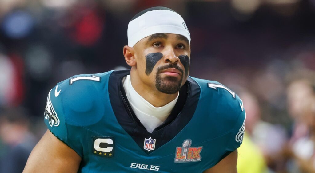 PHOTO: Eagles QB Jalen Hurts Spotted Wearing Banned Cleats During Super Bowl 59