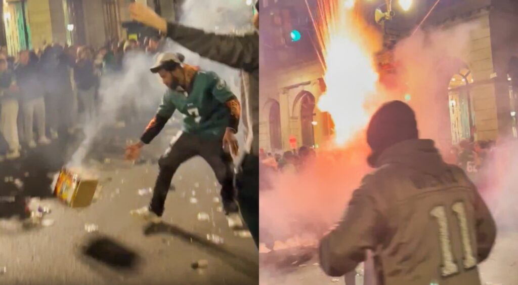 VIDEO: Philadelphia Looked Like A War Zone As Eagles Fans Were Dangerously Blasted By Fireworks During Wild Scene