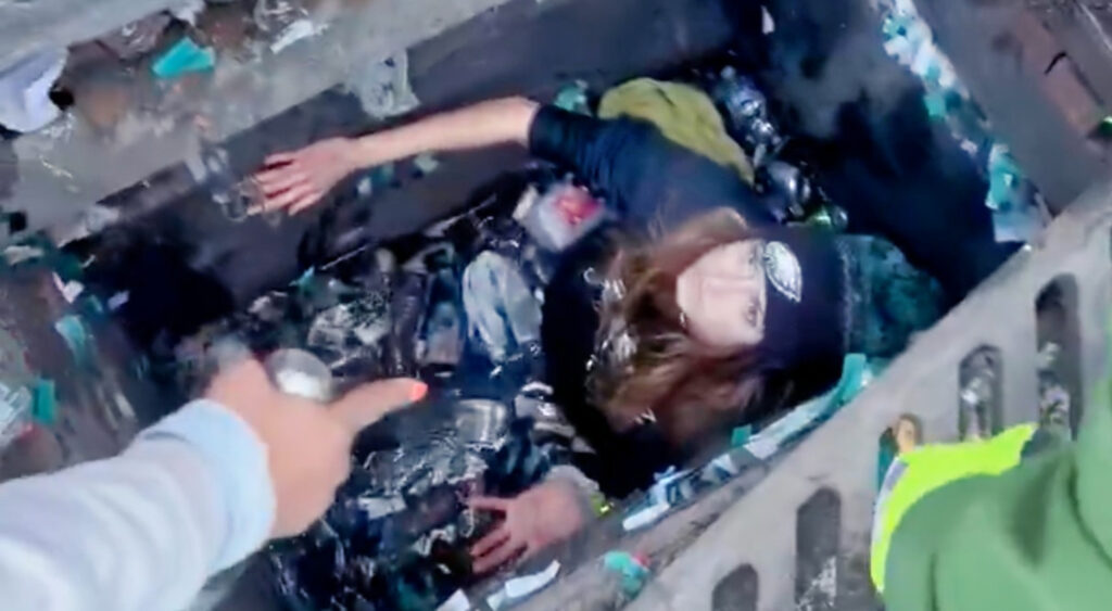VIDEO: Concerned Fans Try To Rescue Female Eagles Fan Who Jumped Into Disgusting Feces-Filled Sewer During Super Bowl 59 Parade