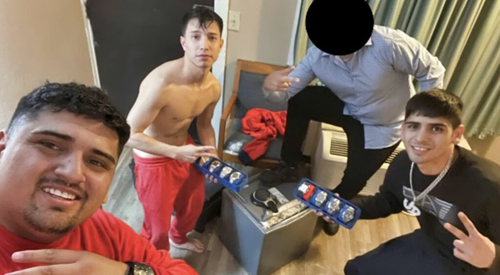 The picture below shows Pablo Zuniga Cartes, Ignacio Zuniga Cartes, Bastian Jimenez Freraut, and an unknown fourth man. Federal prosecutors said this is proof of part of the haul from Portis’ home.