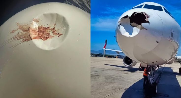 PHOTOS: Commercial Airplane Forced To Make Emergency Landing After Nose Smashed, Smeared In Blood At High Altitude