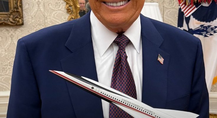 A photo of President Donald Trump gripping a model of the world’s fastest airliner has gone viral, but not for the reason he probably would have hoped.