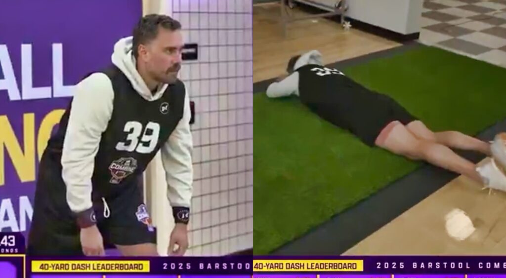Barstool partnered with Planet Fitness to do a combine of their own in celebration of the NFL Draft combine, which is currently happening. In a clip posted to X by Barstool Sports, Big Cat can be seen wiping out during their 40-yard dash.