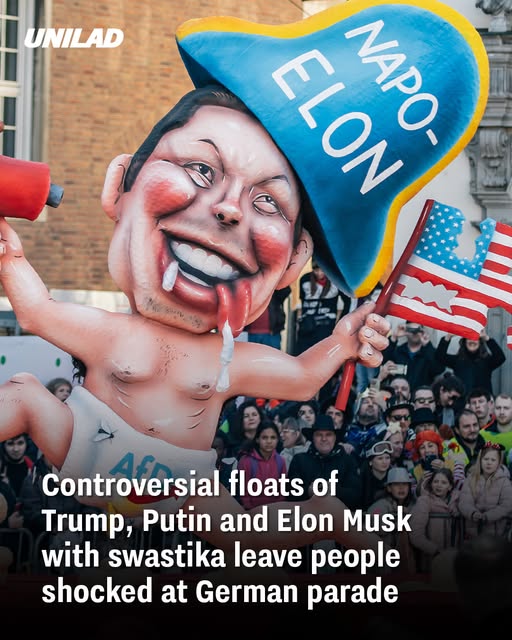 Controversial floats of Trump, Putin and Elon Musk with swastika leave people shocked at German parade