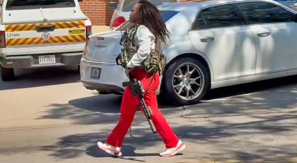 VIDEO: Everyone Wanted To Know Who Was The “Bad*ss” Female Wearing Red Pants With Pink Sneakers While Coming To The Rescue With Her Automatic Rifle At The Scene Of FSU Shooting