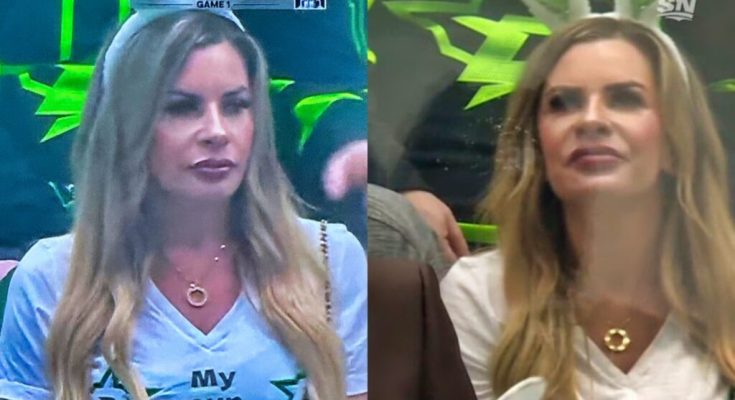 Everyone Was Saying The Same Thing About The Jaw-Dropping Female Hockey Fan Wearing Racy Shirt About Her Cup Size Behind The Stars Bench During Game 1 vs. Avalanche