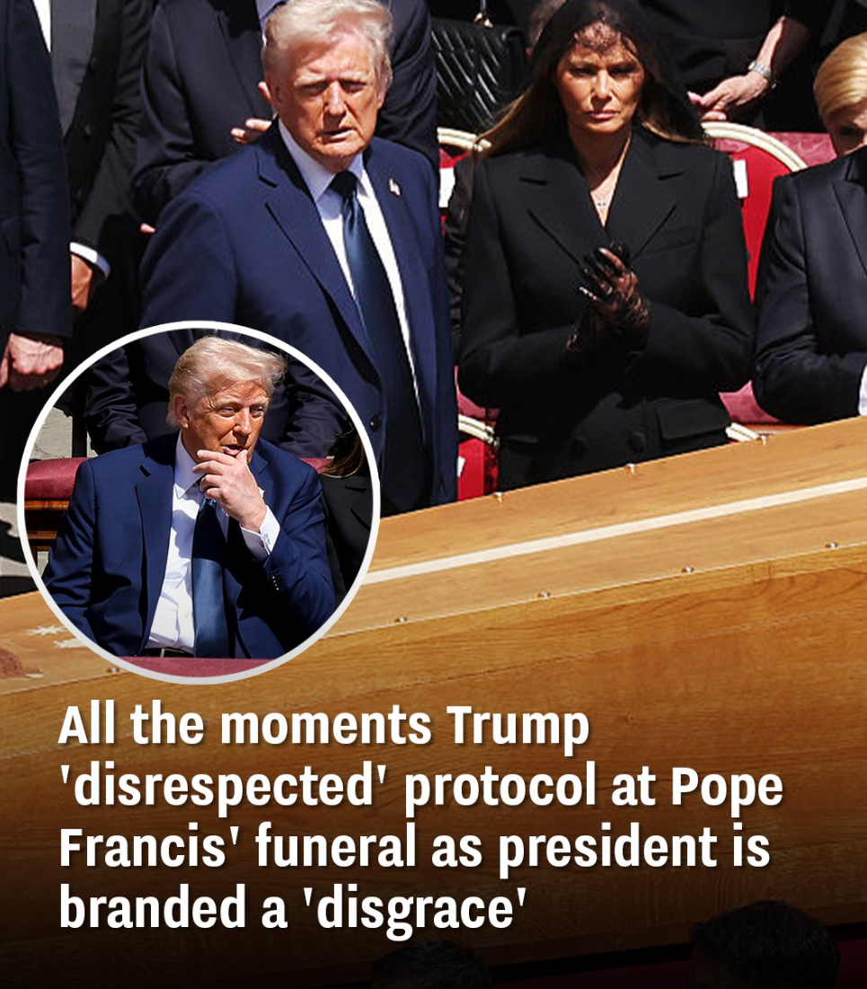 The US president has been dubbed a ‘disgrace’ after apparently ‘disrespecting’ protocol during Pope Francis’ funeral.