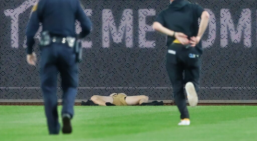 “Tonight, during the seventh inning of the game at PNC Park, an adult male fell from the right field bleachers onto the field of play,” they said in part.