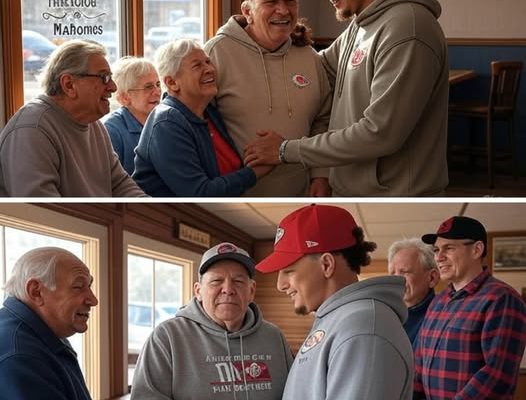 The diner’s revival was swift. Customers came from miles away, drawn by the story and the new sign. High school kids started hanging out there again, inspired by Patrick’s rise from their own town. Betty and Joe hired extra staff, their smiles brighter than ever. They framed Patrick’s letter and hung it behind the counter, next to a photo of him as a teenager, grinning with a plate of pancakes. The diner became a pilgrimage site for Chiefs fans, who left notes and tips far bigger than their bills.