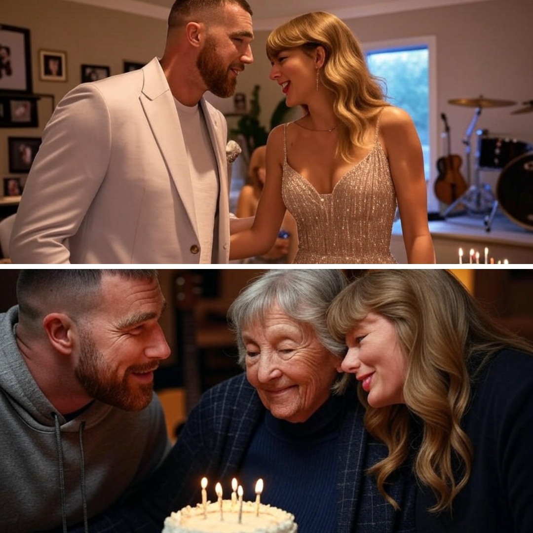 But Taylor Swift never forgot. She’d often spoken of Evelyn in interviews, crediting her first guitar teacher for igniting her love for music. When Taylor learned Evelyn was nearing her 100th birthday, she wanted to do something special. She called Travis Kelce, her partner and a man with a heart as big as his playbook. “Evelyn’s turning 100,” Taylor said, her voice soft but determined. “Let’s throw her a party she’ll never forget.” Travis, always up for a grand gesture, grinned. “Let’s make it epic. Cake, music, the works.” They agreed to keep it secret—no press, no fanfare, just a day for Evelyn.