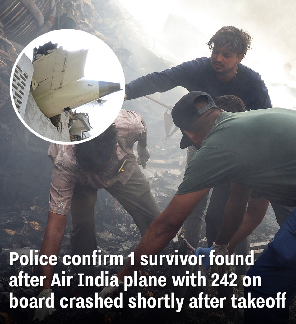 Police confirm 1 survivor found after Air India plane with 242 on board crashed shortly after takeoff