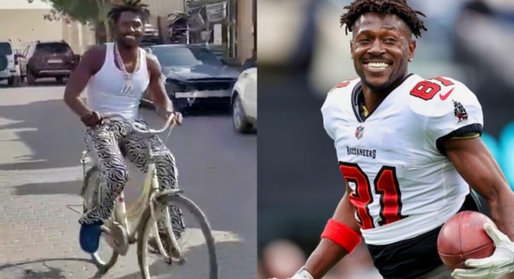 Antonio Brown Doesn’t Look Like Someone Who’s Wanted By Police For Attempted Murder As Cameras Caught Him Casually Riding His Bike With The Widest Grin On His Face