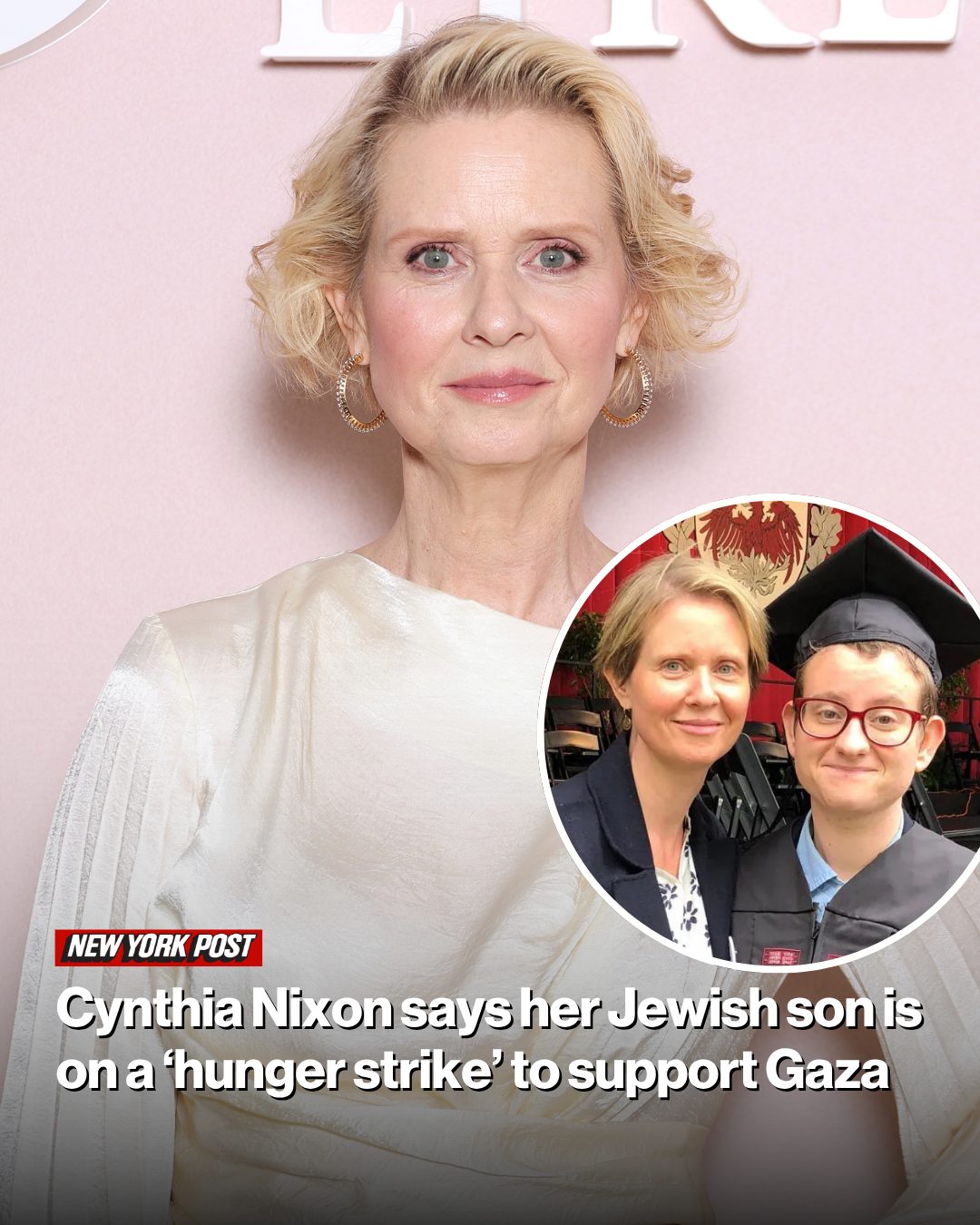 “Sex and the City” star Cynthia Nixon said her son, an “observant Jew,” is currently doing a hunger strike with friends in Chicago to support Gaza and bring attention to the humanitarian crisis there.