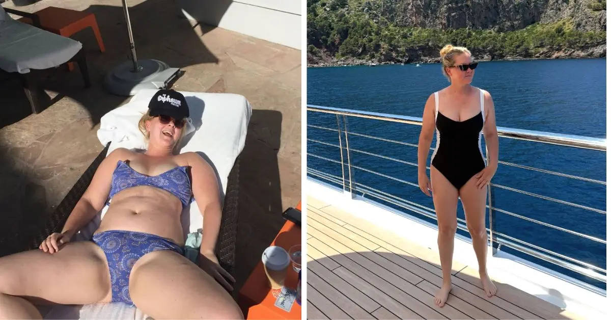 Amy Schumer showed off her svelte figure in a swimsuit months after sharing the extreme symptoms she suffered on Ozempic.