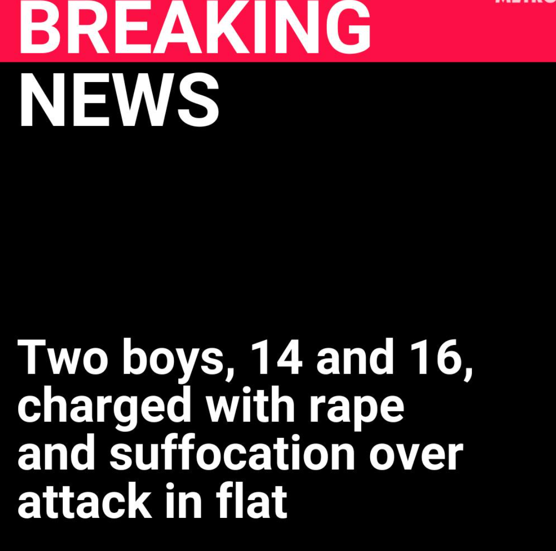 Two boys, 14 and 16, charged with rape and suffocation over attack in flat