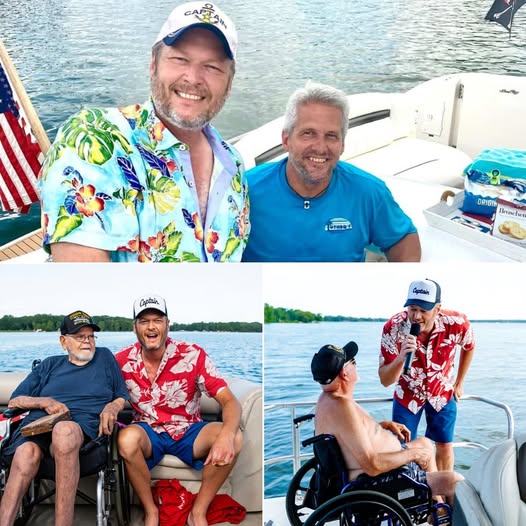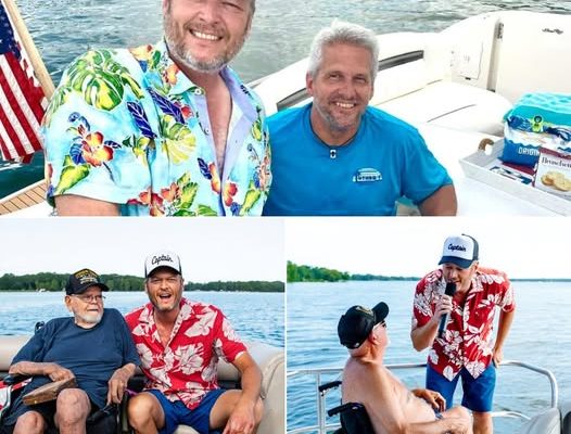 While enjoying a laid-back day on Lake Texoma, Blake Shelton traded his mic stand for a boat deck—but still brought the music. Clad in swim trunks, a tropical shirt, and a “Captain” hat, Shelton made time to meet with a disabled veteran onboard, turning the casual outing into a heartfelt moment. In true country fashion, the singer even delivered a surprise tribute performance, serenading the veteran with a personal song—proving once again that behind the fame is a heart as big as Oklahoma.