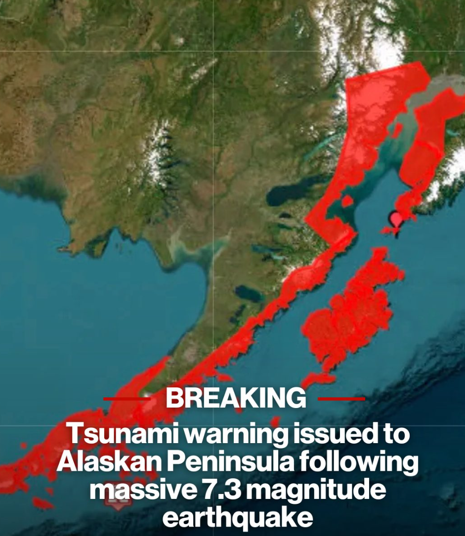 Tsunami warning issued to Alaskan Peninsula following massive 7.3-magnitude earthquake