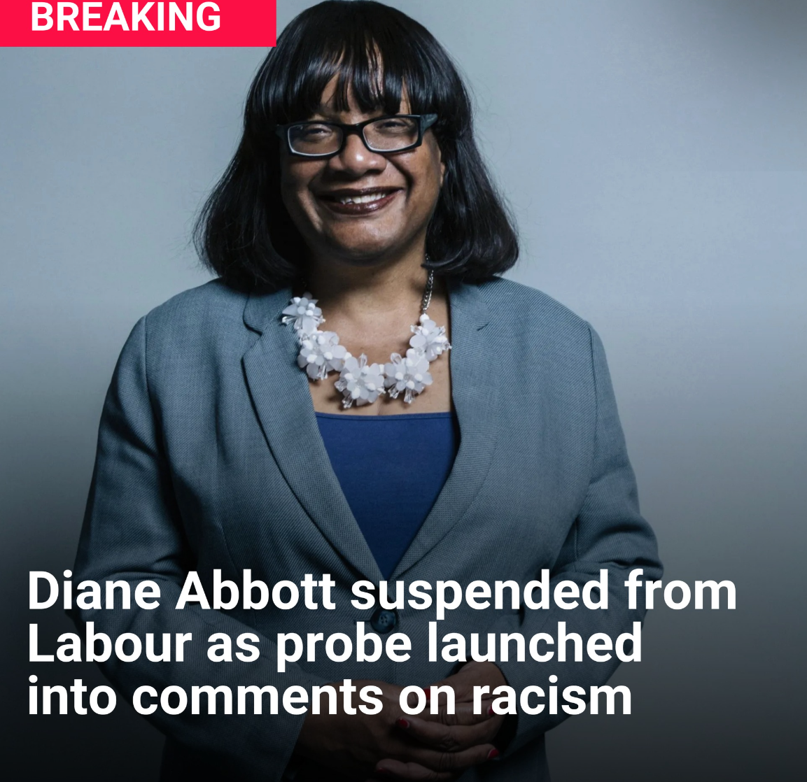 Diane Abbott has been suspended by the Labour Party after doubling down on comments she made about the kinds of racism people face in the UK.