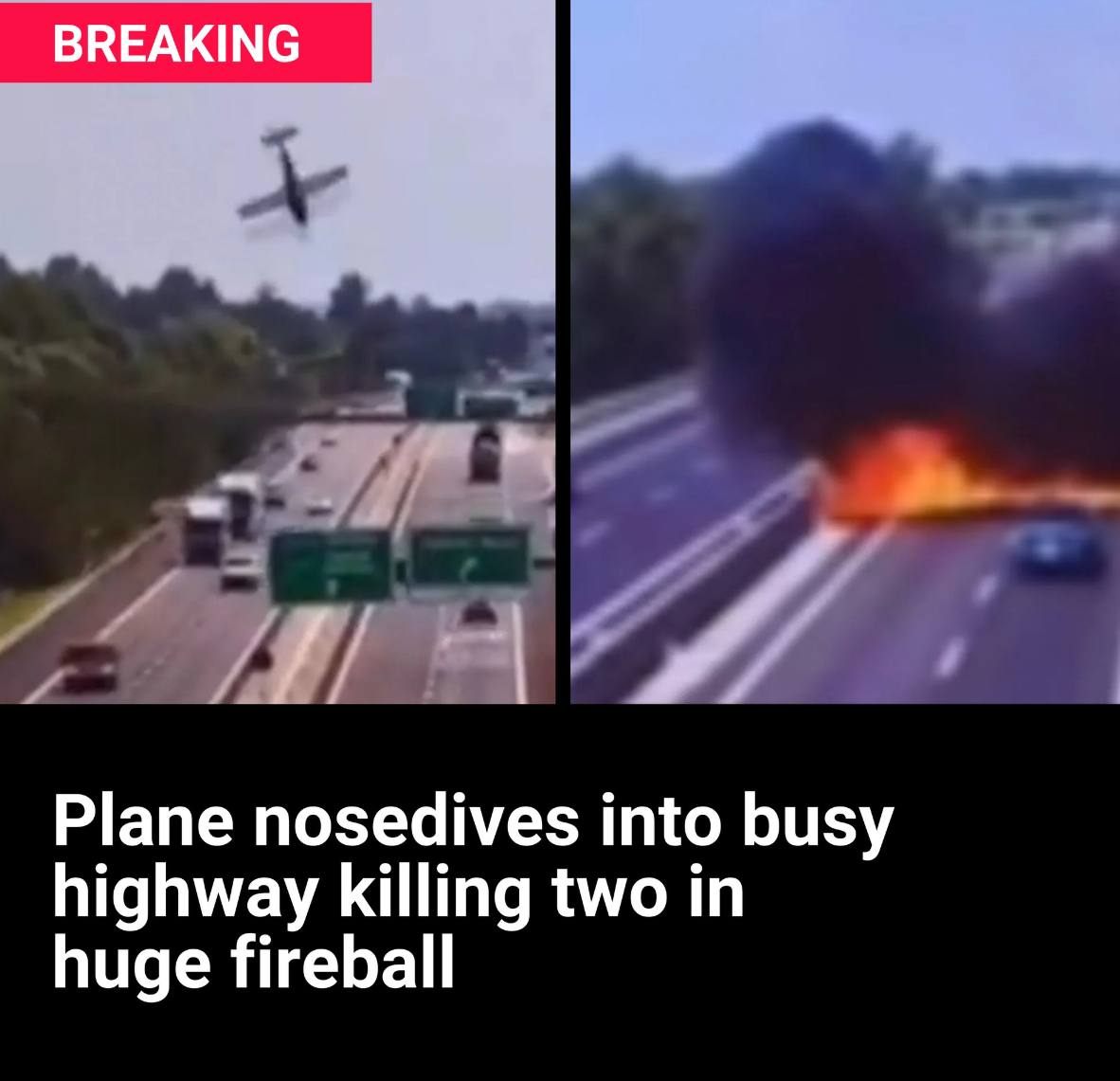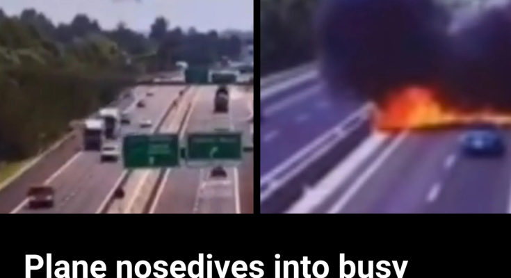 A small plane has nosedived and crashed into a busy highway in Italy.