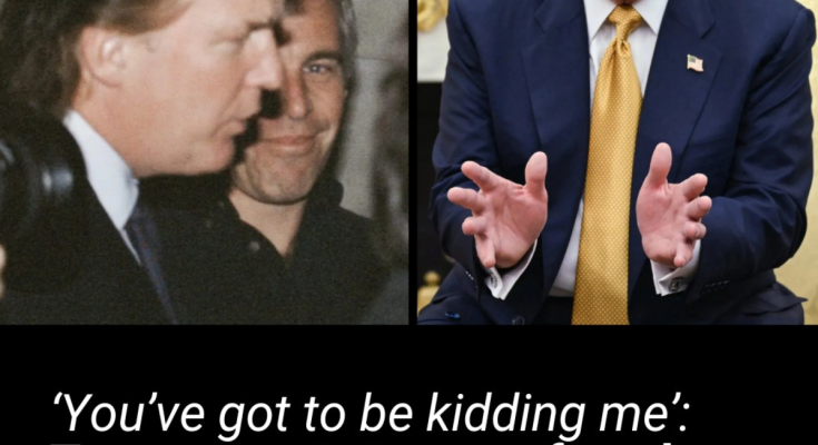 When approached for comment regarding the new footage of him with Epstein, Trump told reporters: ‘You’re kidding me.’