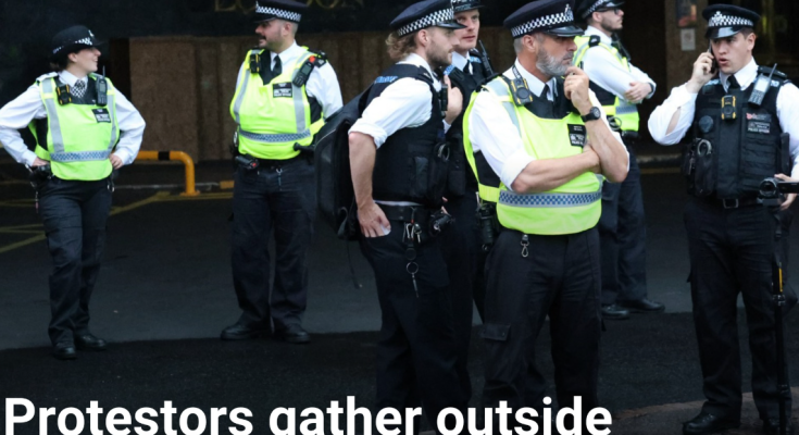 Eggs thrown as protesters clash outside Canary Wharf migrant hotel