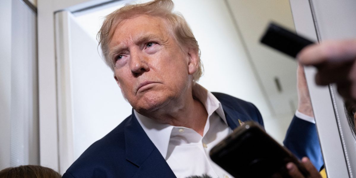 With his security team nearby, President Donald Trump calls out to the press from the West Wing roof of the White House in Washington, D.C., on August 5.