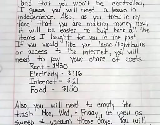 They sat down together and talked—not just about chores, but about respect, responsibility, and how the real world works. In the end, they drew up a more reasonable “family contract” outlining expectations for both of them.