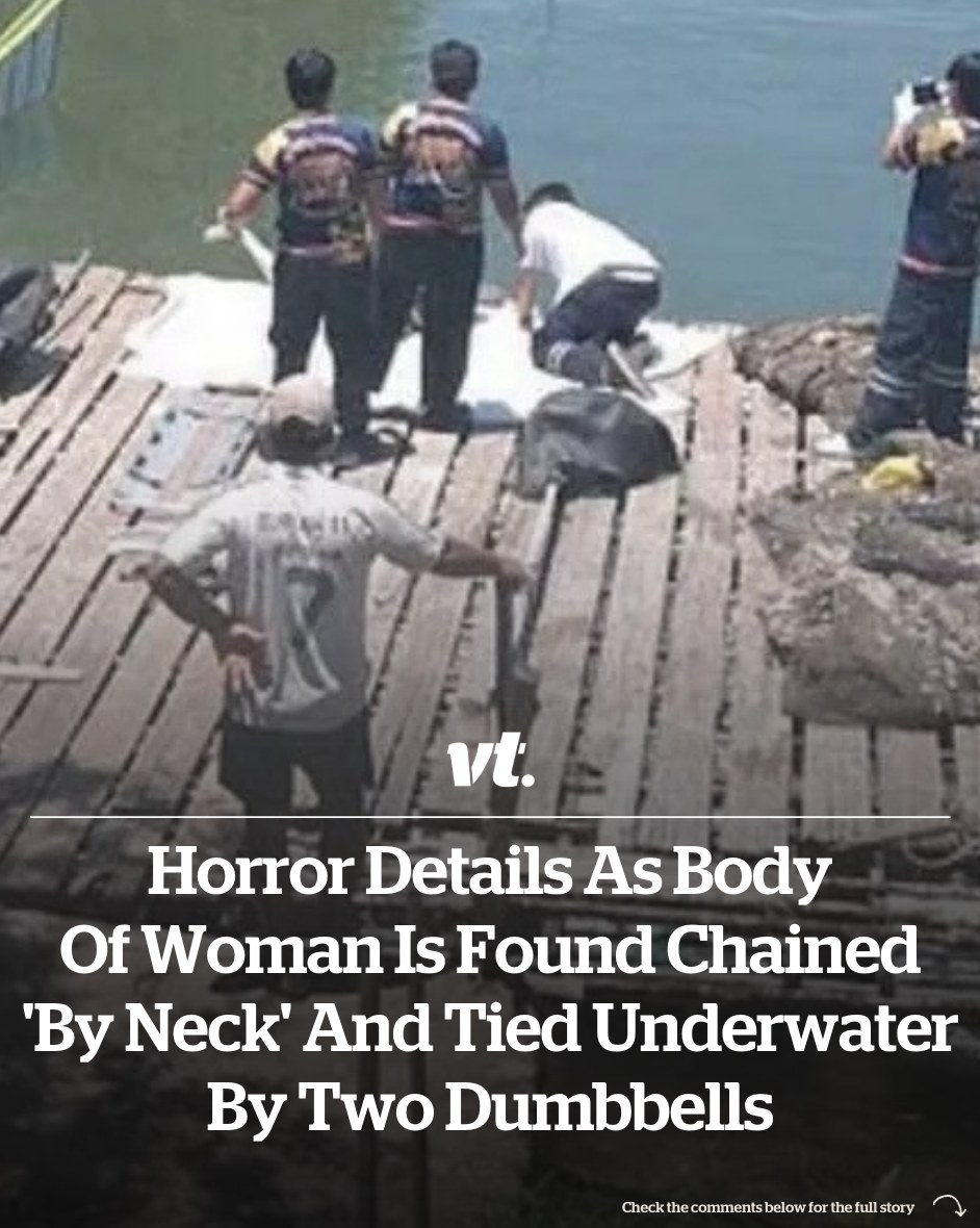 Horror details as body of woman is found chained ‘by neck’ and tied underwater by two dumbbells