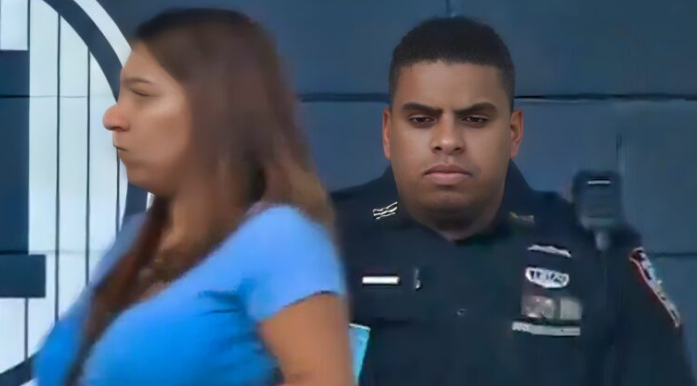Unfortunately for the man, at the same time, a well-endowed woman in a blue top and black pants began to walk past him. The security guard followed her with his eyes and then his entire face.