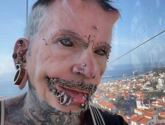 A man with 560 piercings, countless tattoos, and forehead implants – this is how he looked before