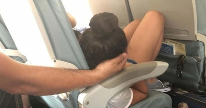 Dad sparks debate holding daughter’s head 45 mins while she slept on flight