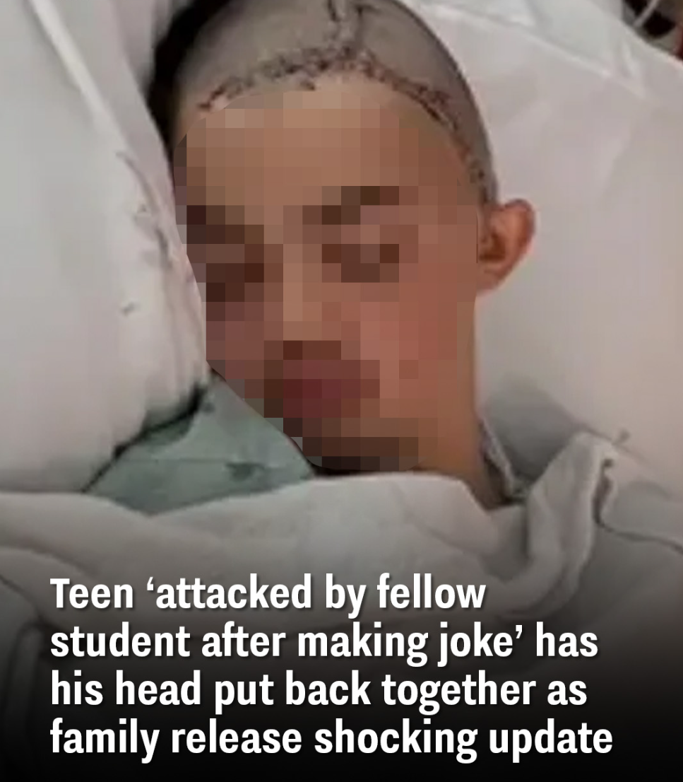A teenager who cracked ‘a joke’ in a school cafeteria has had parts of his skull removed and 60 staples placed in his head after another student allegedly attacked him, according to his parents.