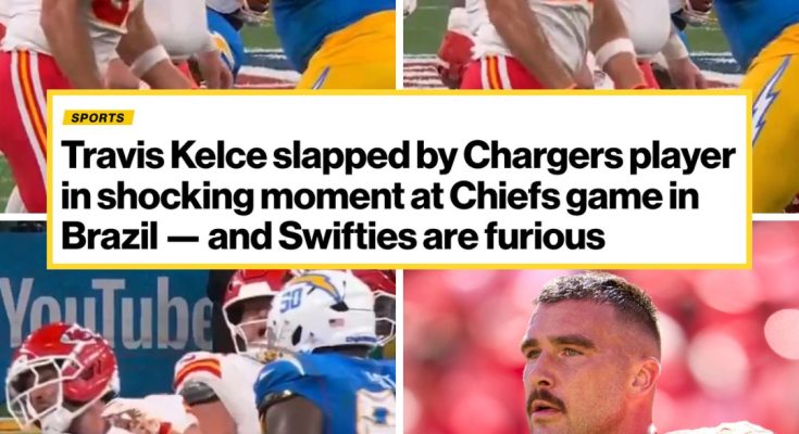Travis Kelce slapped by Chargers player in shocking moment at Chiefs game in Brazil — and Swifties are furious