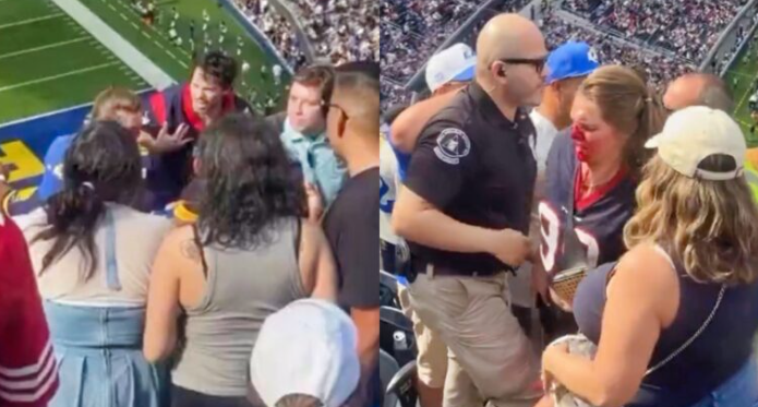Female Texans Fan Left With Face Full Of Blood After Ugly Fight With Male Rams Fan At SoFi Stadium [VIDEO]
