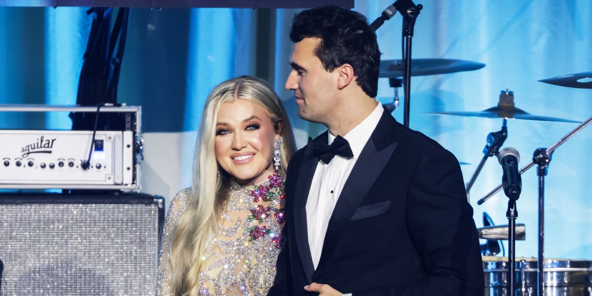 Erika Lane Frantzve and Charlie Kirk on stage during the Turning Point USA Inaugural-Eve Ball at the Salamander Hotel on January 19, 2025, in Washington, DC | Source: Getty Images