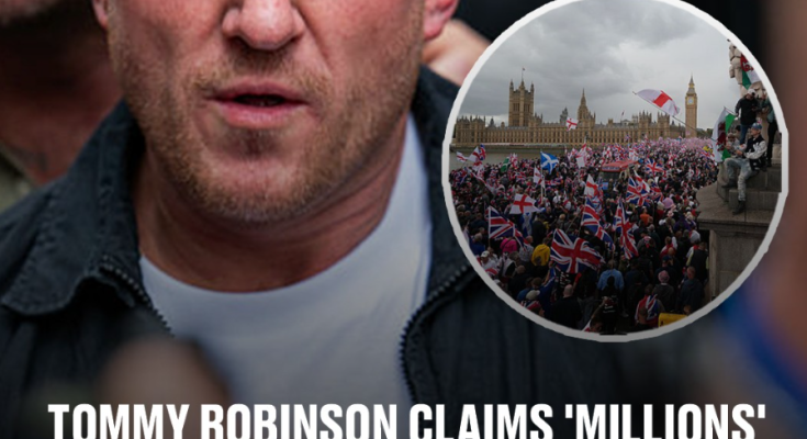 Tommy Robinson, 42, claimed that ‘millions’ of people turned out for the Unite the Kingdom march (X/@TRobinsonNewEra)