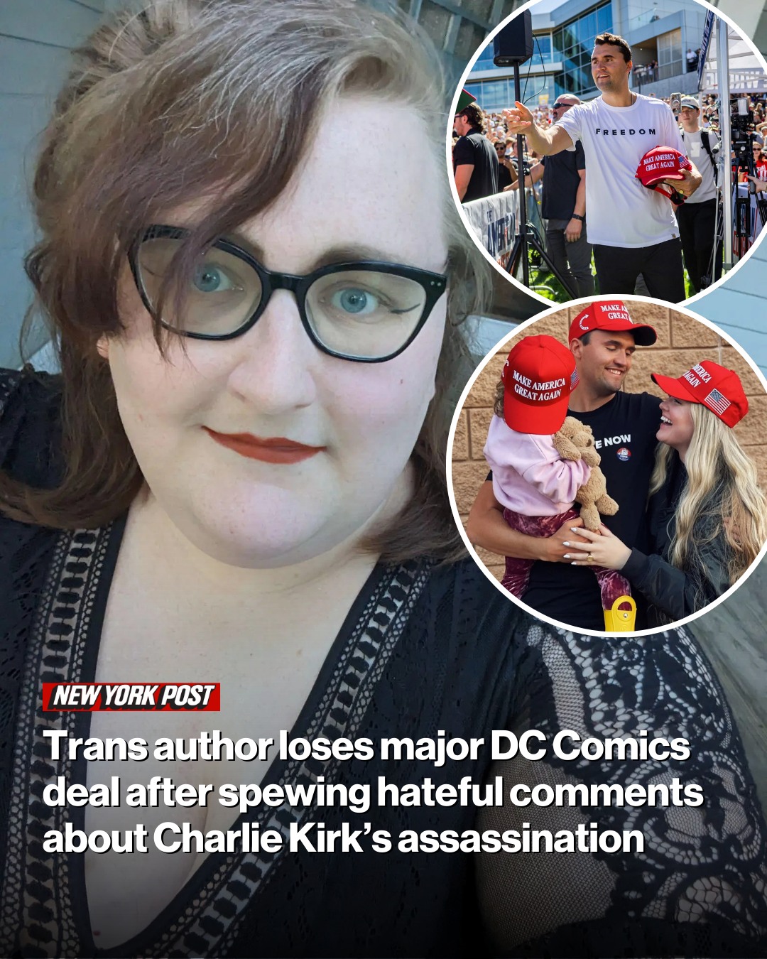 A hate-filled transgender author has lost a lucrative deal with DC Comics after celebrating the assassination of Charlie Kirk — saying her only worry was for the well-being of the sniper’s bullet that killed him.