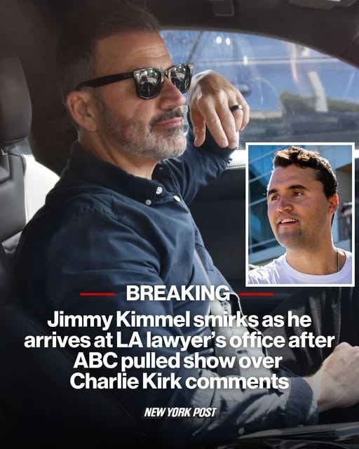 A smirking Jimmy Kimmel emerged from his Los Angeles home Thursday afternoon — to drive himself to his high-powered attorney’s office — after getting canned by ABC over his offensive Charlie Kirk comments.