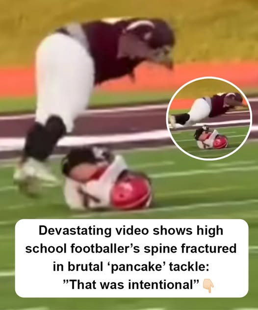 Teen footballer’s spine fractured after brutal pancake tackle caught on tape