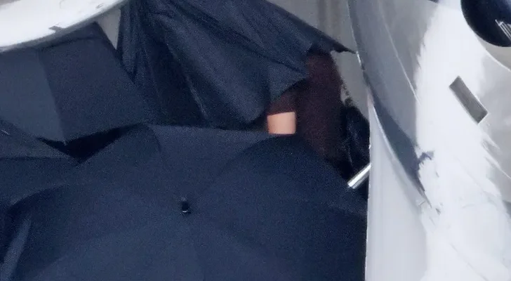 Check it out … it’s a pretty effective disguise — and one Taylor’s used before, pulling a similar trick before Super Bowl LVIII in 2024. You can see just a hint of her maroon dress and her arm as well.A black SUV is waiting at the bottom of the stairs … and it pulls away once Taylor hops inside — whisking her off to wherever she’s staying before the big event.