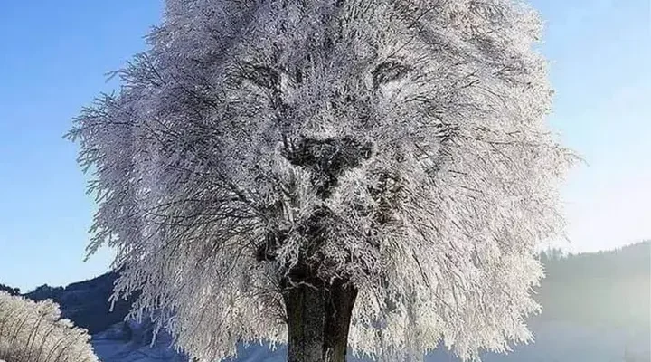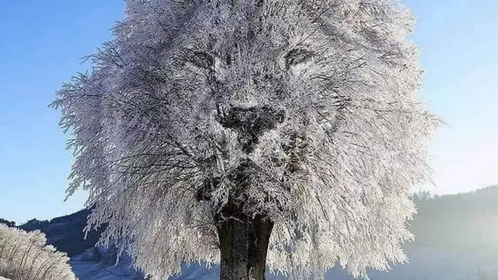 At the heart of this particular illusion is a dual image: some people first notice a snow-covered tree, while others immediately recognize the face of a lion.