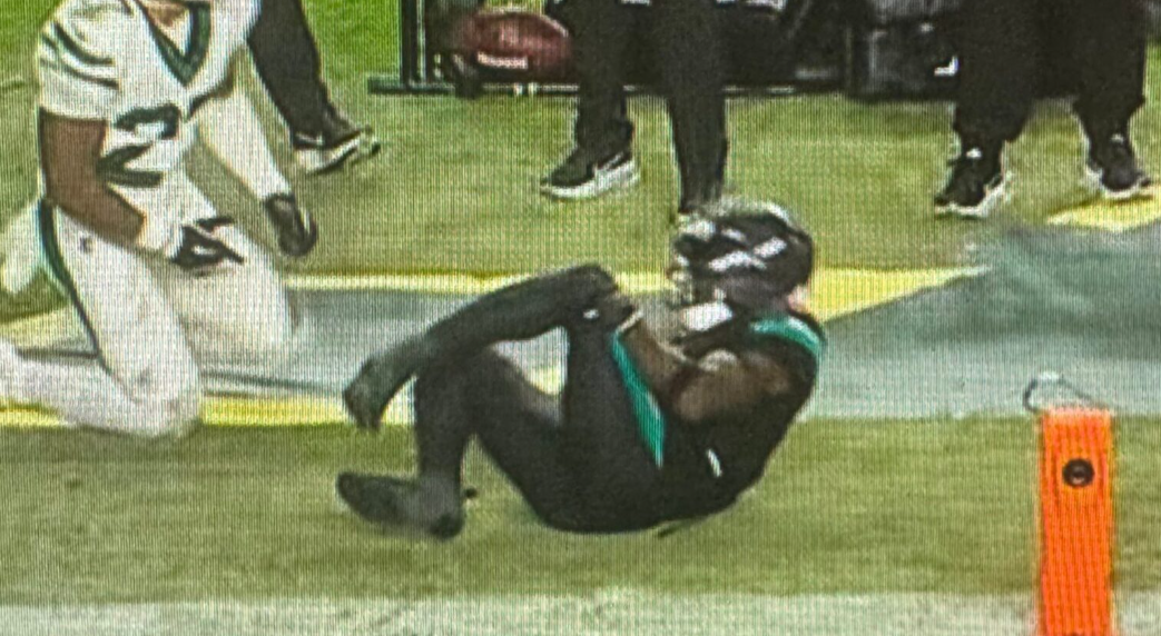 On Monday Night Football against the New York Jets, the star wide receiver tried to finish off a play and found himself being tackled aggressively, with his leg bent in a way that it shouldn’t have been.