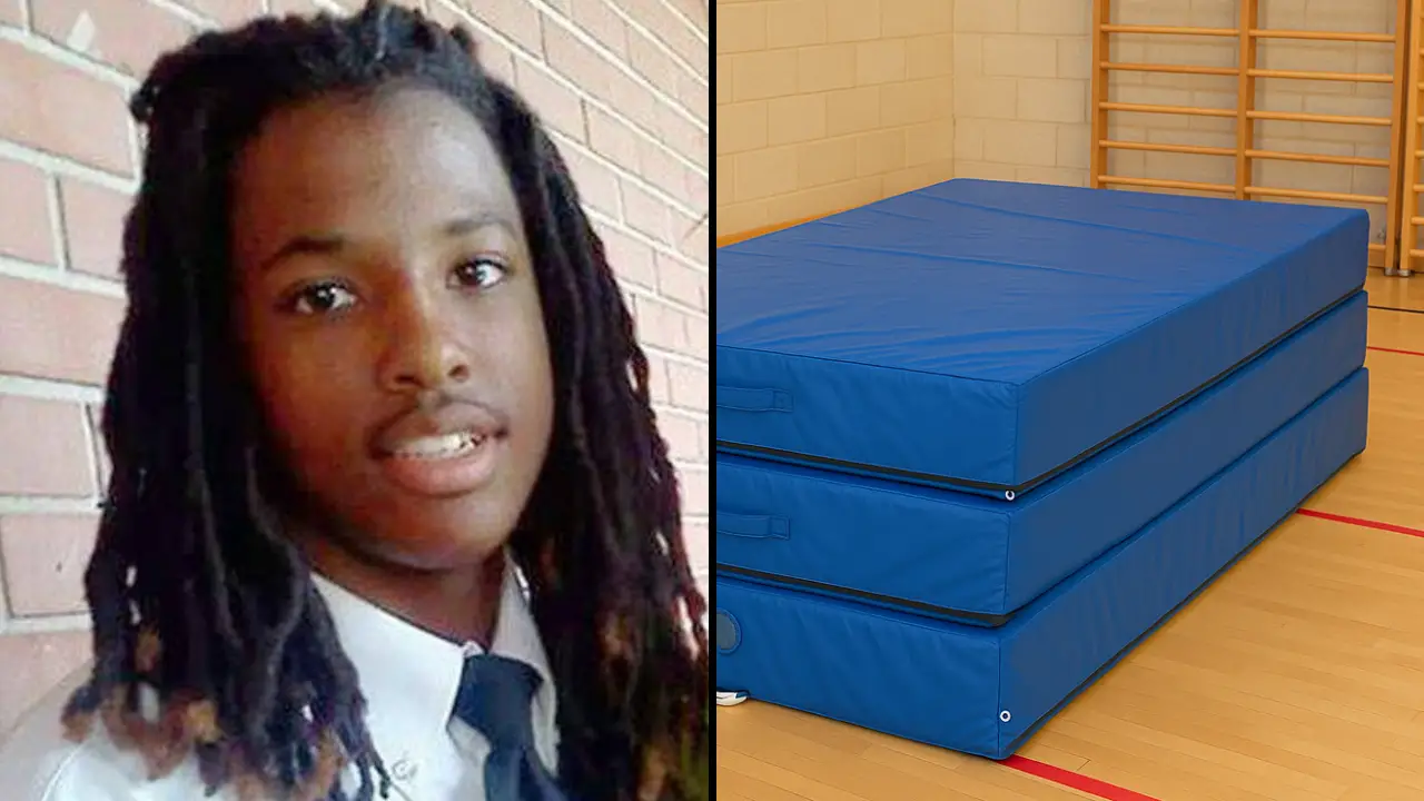Fellow students made the grim discovery when they climbed to the top of a cluster of gym mats standing nearly six feet tall.