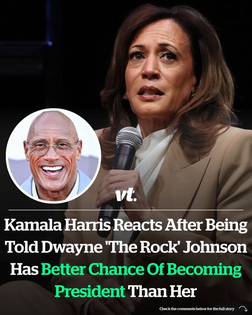 Kamala Harris reacts after being told Dwayne ‘The Rock’ Johnson has better chance of becoming president than her