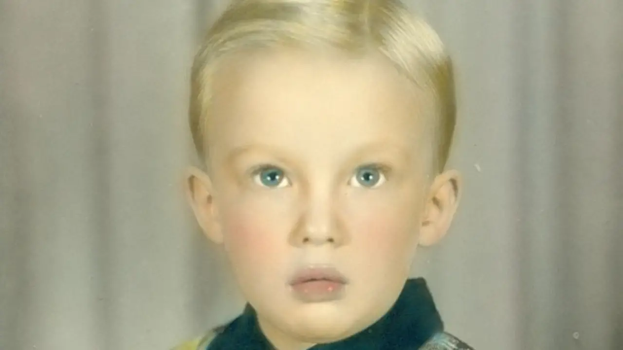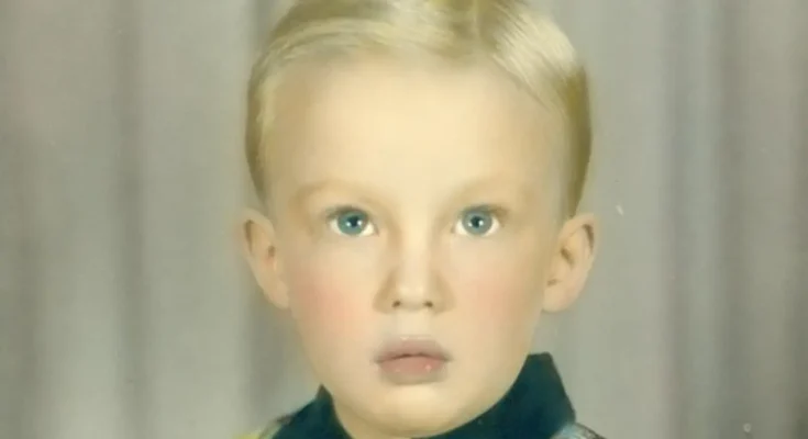 At first glance, the snapshot looks like any classic childhood portrait: a blond-haired boy, barely more than a toddler, sitting with a calm expression, his wide eyes looking into the distance.