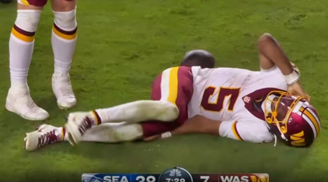 Just when you thought the night for the Commanders couldn’t get worse, Jayden Daniels went down with an injury.
