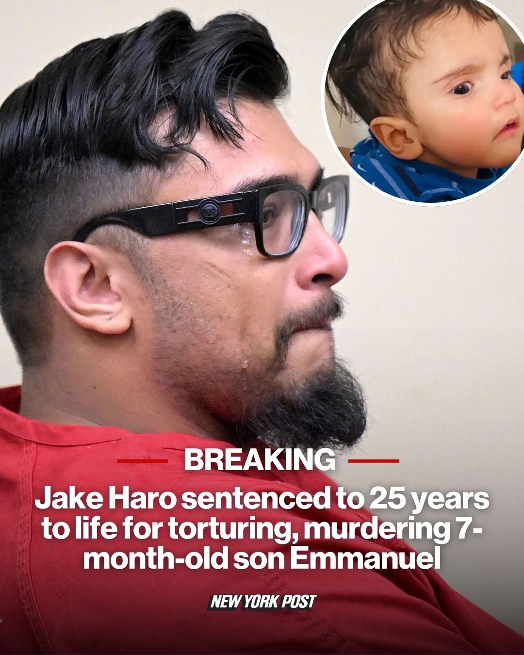 Child abuser dad Jake Haro was sentenced to 25 years to life on Monday for torturing and murdering his defenseless 7-month-old son, Emmanuel — whose tiny body still has not been found.