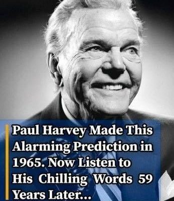 I used to listen to Paul Harvey with my mom in the ‘70s. He was always spot-on with what he said. Everything he predicted 54 years ago is happening right now! Watch it Below