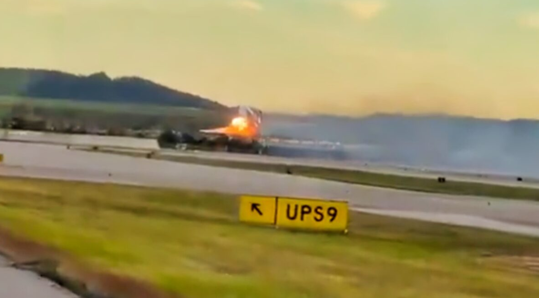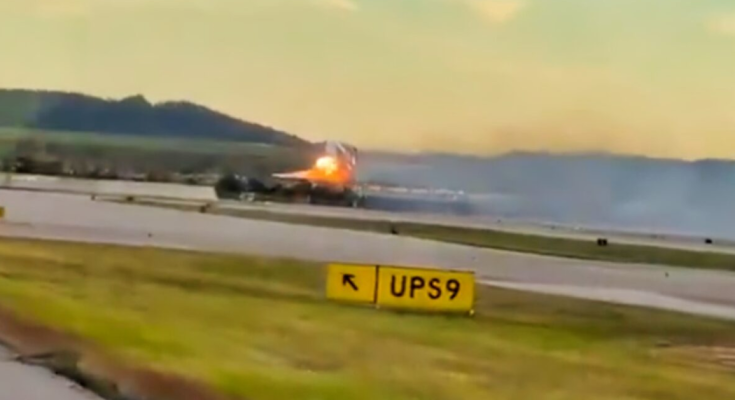 Now, we are seeing new footage of the UPS MD-11 from the ground as it can be seen trying to take off while on fire before it reaches the end of the track and explodes.