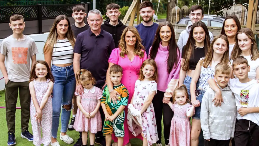 They are parents to Christopher, 36, Sophie, 31, Chloe, 30, Jack, 28, Daniel, 26, Luke, 25, Millie, 24, Katie, 22, James, 22, Ellie, 20, Aimee, 19, Josh, 18, Max, 16, Tillie, 15, Oscar, 14, Casper, 13, Alfie (stillborn), Hallie, 10, Phoebe, nine, Archie, eight, Bonnie, six, and Heidie, five.